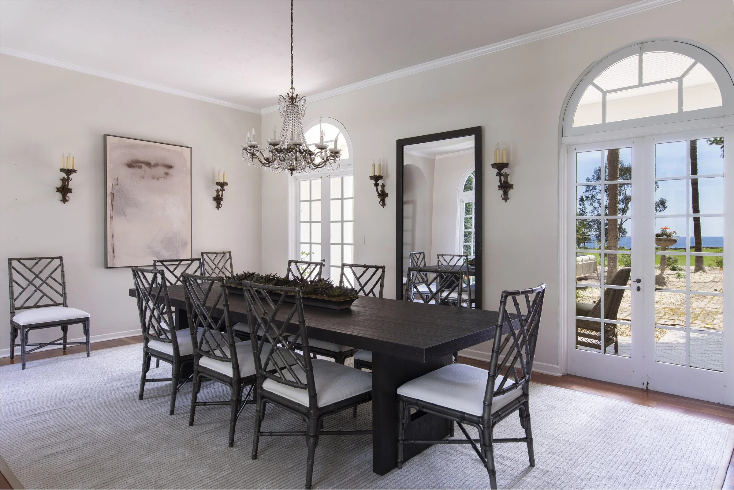 What ultimately distinguishes the estate is its relationship to the land. More than 335 feet of ocean frontage and uncommon depth allow the estate to breathe in a way few Padaro properties can. A broad lawn extends toward the bluff’s edge, recalling a time when land was valued not for what could be added, but for what could be preserved. Mature trees anchor the landscape. Gardens soften transitions between structures. The mountains rise quietly to the north while the Pacific defines the southern horizon.