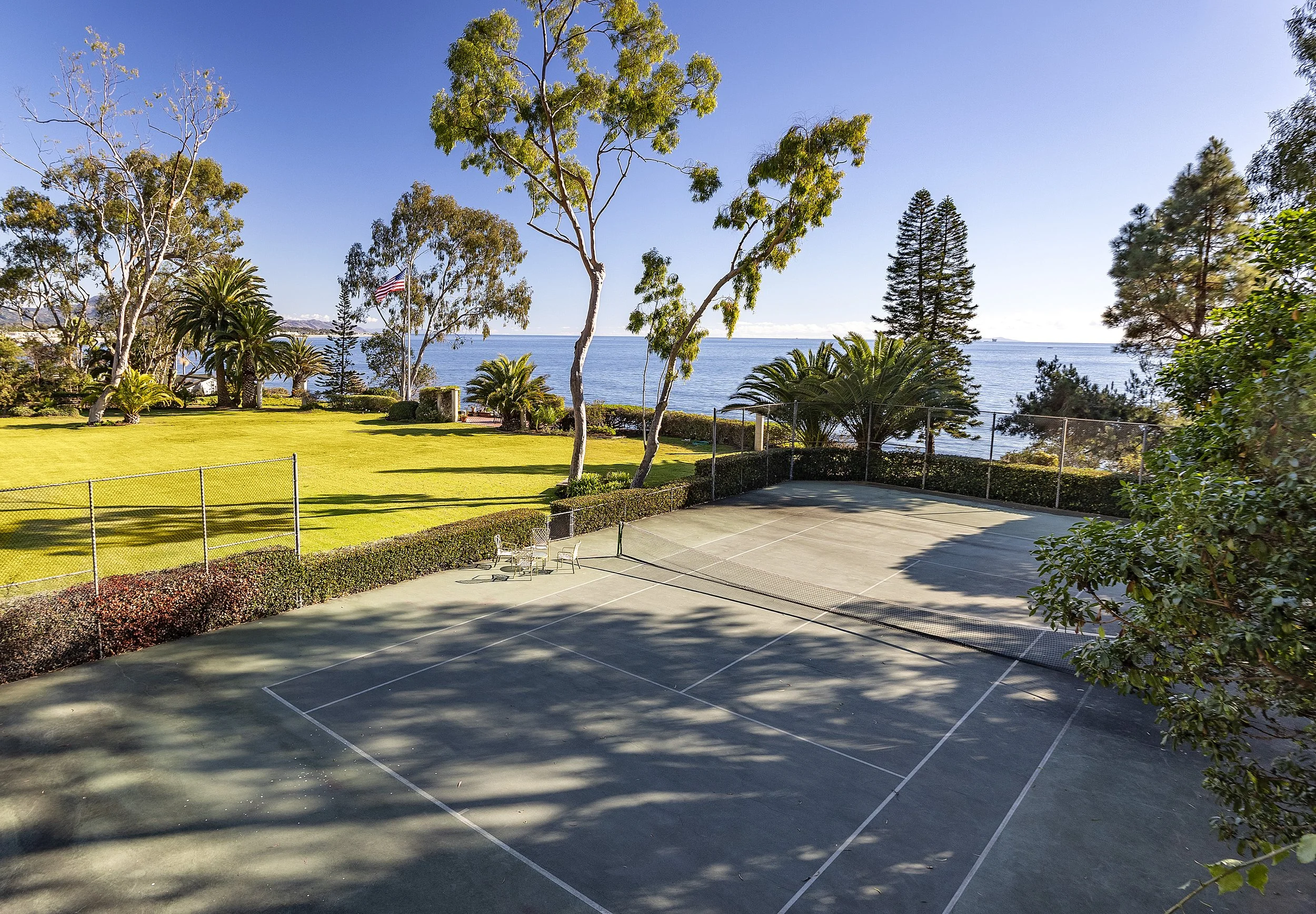 The setting offers both intimacy and openness. Two direct beach access points connect the estate to the shoreline below, while a tennis court, open grounds, and additional structures provide the framework for a multi-generational retreat. A private well supports the landscape, and two legal parcels offer long-term flexibility while preserving the integrity of what exists today.