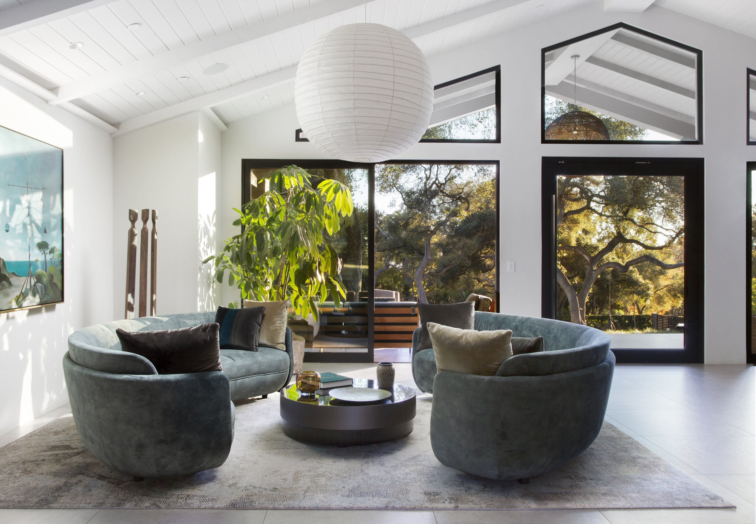 Set beneath a canopy of old oaks on 2.53 acres in Montecito’s Riven Rock neighborhood, the property unfolds more like a private park than a traditional estate. Gardens instead of lawns. Light instead of ornament. Space that prioritizes calm over spectacle.