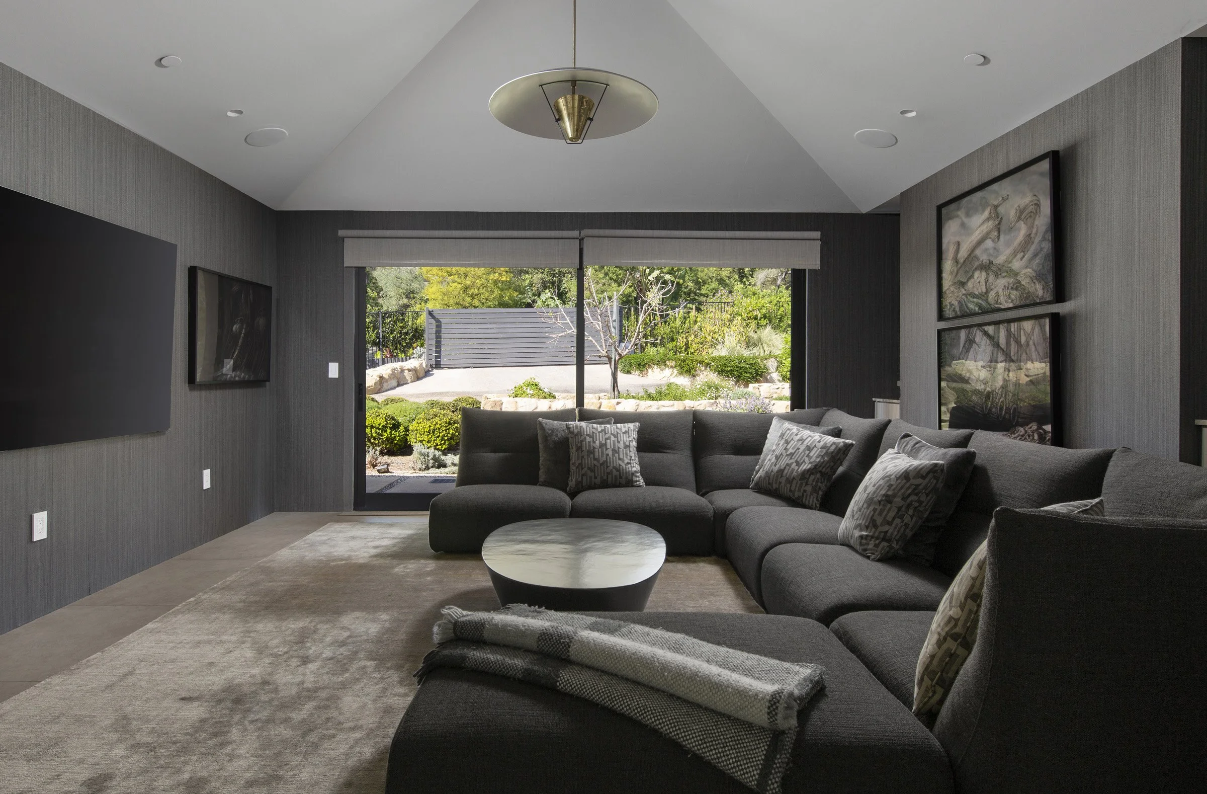 Four additional bedrooms offer flexibility for loved ones or workspace, continuing the same material continuity and calm architectural language found throughout the residence. A separate media room provides a more intimate setting within the home, ideal for film, music, or quiet evenings.